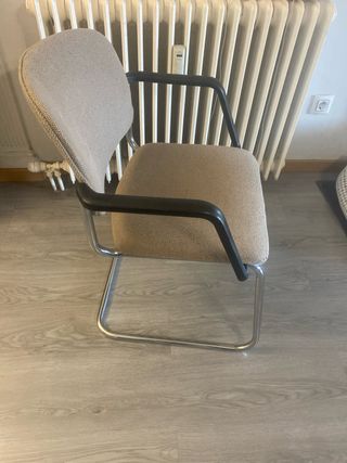 Silla de oficina con un diseño moderno y cómodo. - Asiento y respaldo tapizados en tela. - Patas y brazos de metal cromado. precio unidad hay 5