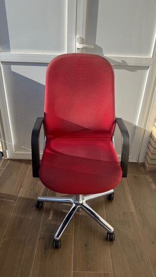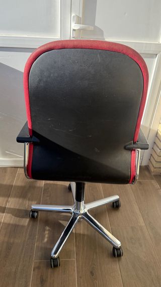 Silla de oficina Wilkhahn con un diseño moderno y ergonómico. - Tapicería de tela en color rojo. - Base de metal plateado. - Reposabrazos negros. Se entrega también con una funda negra Entrega en mano Si te interesan 2 unidades te las dejo por 35€ las 2