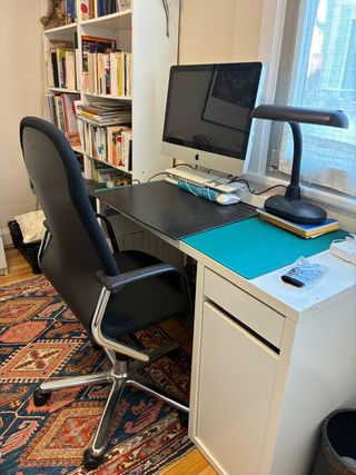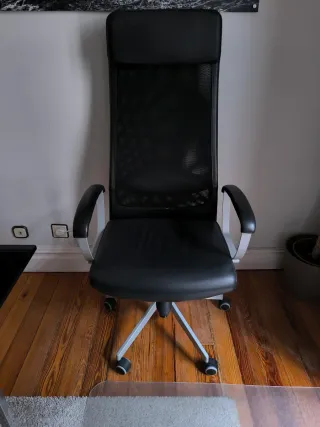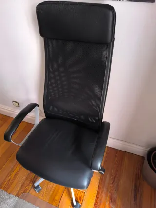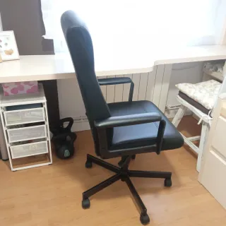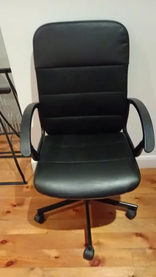 Silla de oficina giratoria de Ikea, ideal para tu espacio de trabajo. - Diseño ergonómico. - Base con ruedas para fácil movilidad. - Tapizado en piel.