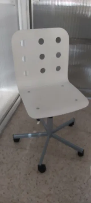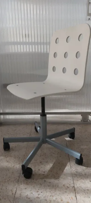 Silla de oficina con asiento y respaldo perforados, ideal para cualquier espacio. Impecable estado ya que se compró en Ikea y fue montada para un uso de 3 meses. - Altura ajustable. - Base con ruedas para fácil movilidad. - Diseño moderno y funcional.