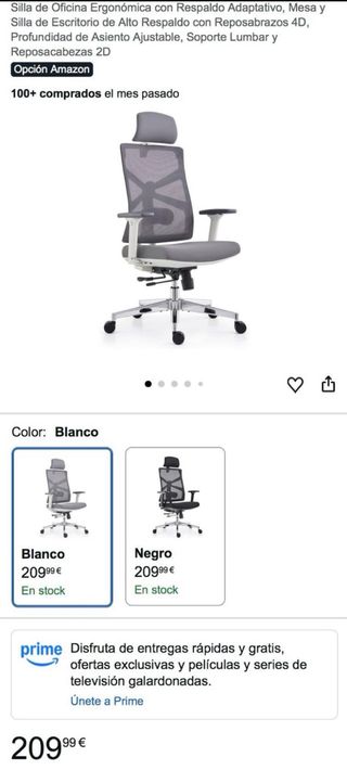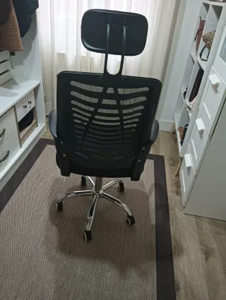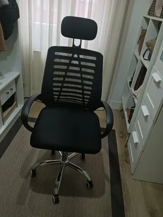 Silla de escritorio con diseño ergonómico y moderno. Vendo silla de oficina ergonómica con reposacabezas y soporte lumbar. Comprada en Amazon en 2023. - Respaldo de malla transpirable. - Asiento acolchado. - Reposabrazos ajustables. - Base robusta. Muy cómoda para estudio u oficina en casa. Buen estado. Recogida en mano.