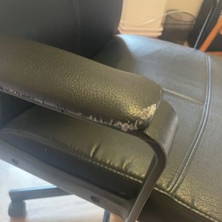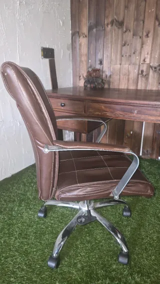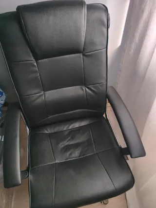 Silla de oficina con un diseño moderno y ergonómico. - Tapizado en piel sintética. - Base giratoria con ruedas. Está como nueva, en perfectas condiciones