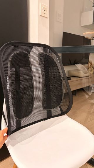 SIN USAR El Corte Ingles 49,99€ Respaldo ergonómico Fellowes Mesh Office Suites Reduce la tensión de la espalda manteniendo una postura adecuada cuando se está sentado Se ajusta a los contornos del cuerpo propocinando el máximo apoyo Material de malla que permite la circulación del aire para mayor comodidad personal Sistema tensor que permite ajustar el respaldo a cualquier silla Certificado por FIRA Internacional en normativa ISO 9241-5 Medidas: 44 x 14 x 51 cm. Color negro ELECCIÓN SOSTENIBLE: Fabricado con materiales 100% reciclados.