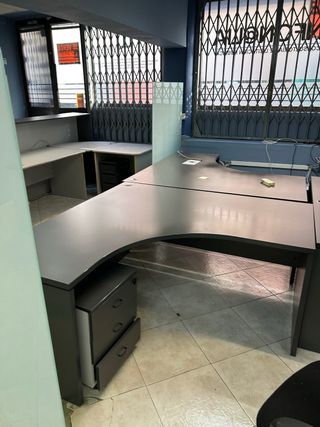 Mesas de oficina en muy buen estado 11 puestos call center L 160 x 160 x 60 6 mesas 160 x 80 2 mesas L 160 x 160 x 80 1 mesa L 160 x 200 x 80 1 mesa 220 x 80 con ala 80 x 60 1 mesa U 220 x 80 con 2 alas 160 x 60 10 Buck 3 cajones con llave Mostrador Recepción 400 x 115 alto Sillas aula Sillas oficina Mamparas