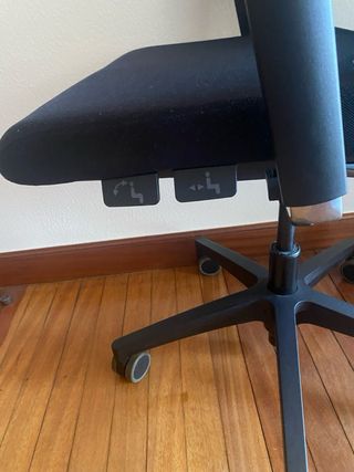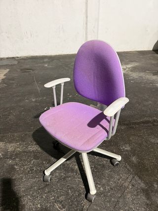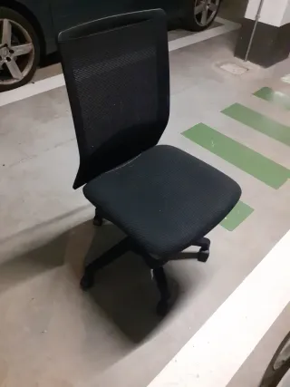 Silla de oficina con asiento ergonómico y respaldo. - Base con ruedas para fácil movilidad. - Altura ajustable. - Diseño moderno y cómodo. Habría que cambiar la goma de las ruedas (o las ruedas).