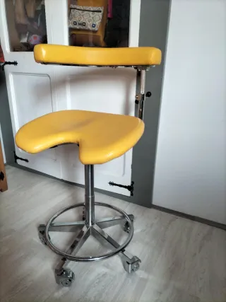 Vendo 4 sillas giratorias de silleño Eurochair de Girsberger,silla de oficina vintage, modelo de los años 70. - Tapicería en tela color mostaza. - Base de metal con ruedas. -Tiene hidráulico para subir y bajar la altura del asiento,ruleta para regular la altura del respaldo. Tengo 4 unidades.