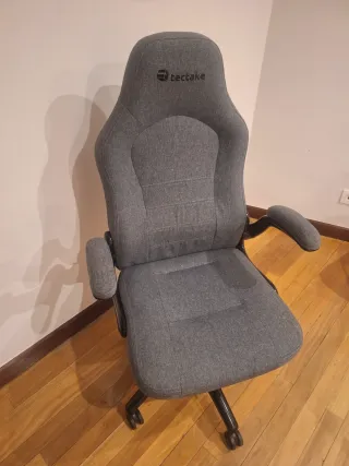 Silla de oficina ergonómica de la marca tectake. Su diseño se adapta a la forma del cuerpo para mayor comodidad. - Tapicería de tela. - Color gris. - Base con ruedas para facilitar el movimiento.