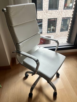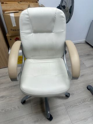 Silla de oficina blanca y beige polipiel