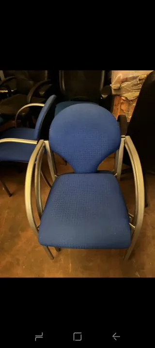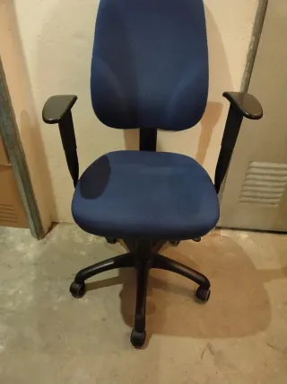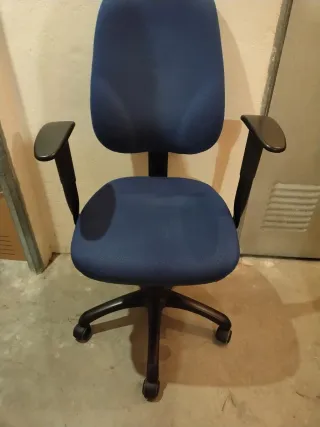 Se vende silla de oficina. Es una silla cómoda y resistente, ideal para el trabajo diario. - Estructura metálica. - Tapicería azul de tela. - Brazos negros.