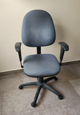 Silla de oficina en muy buen estado, cómoda y funcional. - Tapicería de tela. - Base y brazos de plástico.