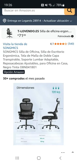 Silla de oficina ergonómica de la marca Spacio. - Diseño moderno y funcional. - Asiento y respaldo cómodos. Me la han regalado por teletrabajo.