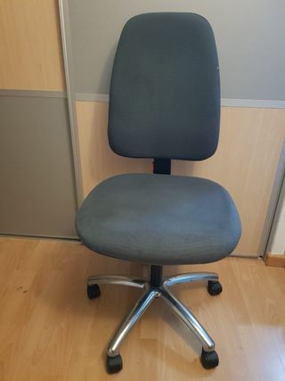 Silla de escritorio con un diseño moderno y funcional. Funciona perfectamente, se puede comprobar - Asiento y respaldo tapizados en tela. - Base de metal con ruedas. - Reposabrazos de plástico.