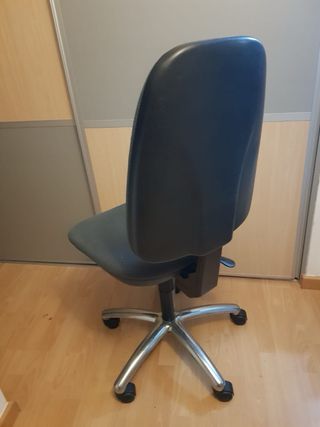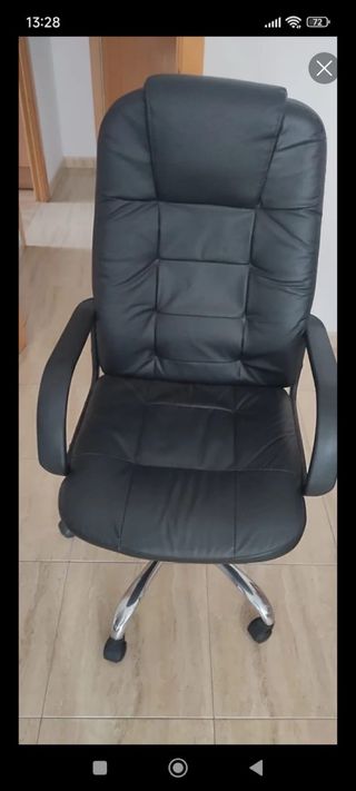 Silla de despacho cómoda y ergonómica. - Respaldo alto. - Brazos acolchados. - Base giratoria con ruedas.