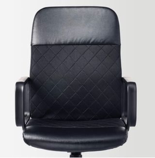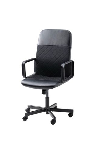Silla de oficina Ikea modelo FLINTAN en color negro. Su diseño ergonómico ofrece comodidad para largas jornadas. - Respaldo de malla transpirable. - Asiento acolchado. - Base con ruedas para fácil movilidad.