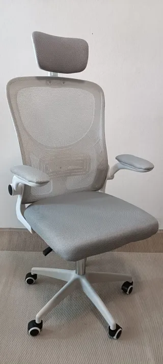 Silla de oficina ergonómica de malla transpirable. - Diseño moderno y cómodo. - Respaldo alto con soporte lumbar. - Reposacabezas ajustable. - Brazos acolchados. - Base con ruedas para fácil movilidad. -esta usada pero en muy buen estado