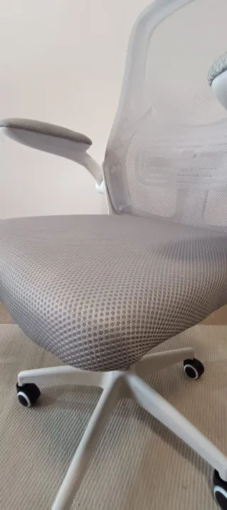 Silla de oficina cómoda y ergonómica, ideal para largas jornadas de trabajo. - Respaldo de malla transpirable. - Asiento acolchado. - Brazos ajustables. - Base giratoria con ruedas.
