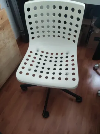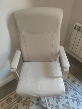 Silla de oficina con un diseño moderno, ergonómico y ajustable - Asiento y respaldo acolchados para mayor comodidad. - Base giratoria con ruedas para facilitar el movimiento. - Ajustable en altura y respaldo El único pero es algo de suciedad pero con cariño se puede solucionar.