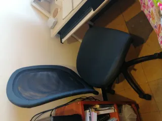 Silla de oficina cómoda y funcional. - Respaldo de malla transpirable. - Asiento acolchado. - Base metálica con ruedas. - Altura graduable. El precio esta ajustado. Abstenerse de negociar. Lugar de recogida: Castelldefels u Hospitalet.