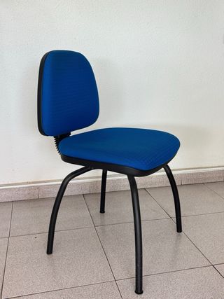 Silla de oficina con asiento y respaldo tapizados en tela azul. - Estructura metálica. - Diseño ergonómico. - Altura: 47 cm Ancho:45 cm Alto 45 cm Disponibles 3 uds