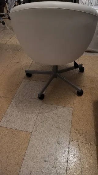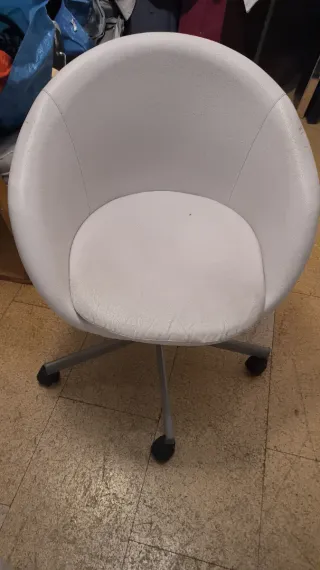 silla de escritorio giratoria Ikea Skruvsta, en color blanco. - Estructura de metal. - Tapizado de cuero sintético. - Diseño elegante y cómodo. - Se encuentra en buen estado.