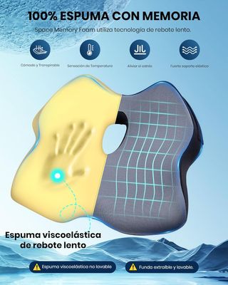 BALITTA Cojín Coxis Ortopedico, Cojín Sacro Coxis Cojin Silla Oficina Cojines Ortopédicos de Espuma, Cojin Ergonomico Silla Oficina para Dolor de Espalda y Alivio de Dolor de Hueso de la Cola Sciático - Diseño contorneado. - Funda de tela transpirable.