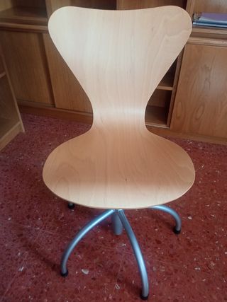 silla giratoria de escritorio. base de madera y patas grises. en buen estado de conservación