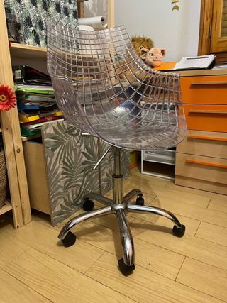 Silla de ofina/estudio. Material acrílico transparente con ruedas y altura regulable. Modelo Alaska