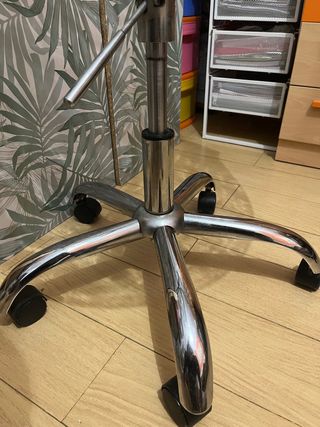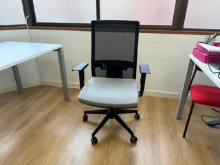 Silla de oficina con ruedas, en buen estado. - Asiento acolchado y cómodo. - Respaldo de malla transpirable. - Base de ruedas para facilitar el movimiento.