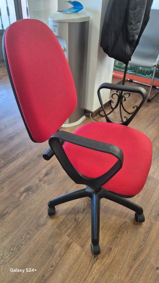 Silla de oficina en perfecto estado, casi nueva. Su diseño moderno y color vibrante la hacen destacar. - Base metálica con ruedas para fácil movilidad. - Asiento y respaldo tapizados en polipiel. - Tlfn. 665248518 - Solamente venta personal no envíos