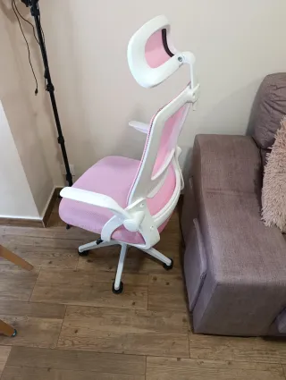 Silla de escritorio ergonómica rosa y blanca