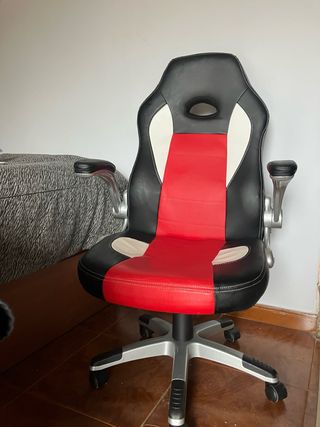 Cómoda silla de oficina en buen estado. - Asiento y respaldo acolchados. - Estructura metálica resistente. - Color rojo y gris. Tengo 13 sillas. Si me llevas todas, te las dejo a 10 €.