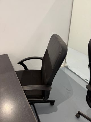 Silla de oficina con un diseño moderno y funcional. - Respaldo de malla transpirable. - Asiento acolchado para mayor comodidad. - Brazos ergonómicos. - Base con ruedas para fácil movilidad. 50€ cada una. Ahora “solo 25€” cada una)