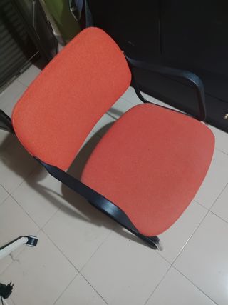 Se vende silla de escritorio. Es una silla cómoda y en buen estado. - Estructura metálica. - Asiento y respaldo de tela. - Color naranja y negro.