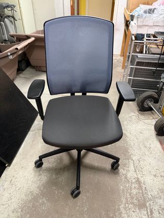 Silla de oficina ergonómica giratoria con reposabrazos ajustables que se encuentra en perfecto estado, ha sido comprada y utilizada tan solo durante dos meses, se vende por motivo de mudanza.