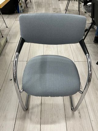 Conjunto de dos sillas de oficina con un diseño moderno y funcional. Son cómodas y perfectas para cualquier espacio de trabajo o sala de espera. - Estructura metálica robusta. - Tapicería de tela. - Brazos integrados.