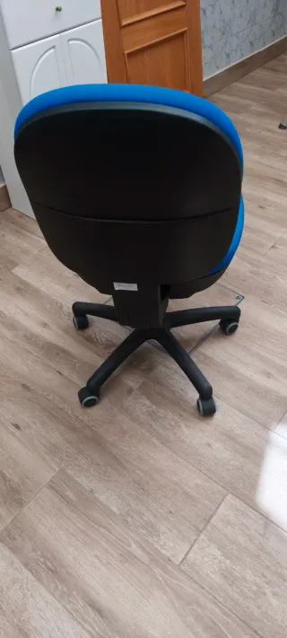Silla de oficina giratoria de color azul y negro.