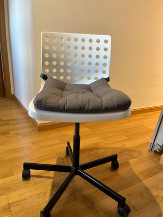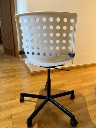 Silla de escritorio moderna y funcional de Ikea. Su diseño con orificios la hace ligera y ventilada. - Base con ruedas para fácil movilidad. - Altura ajustable para mayor comodidad. 27€ cada una