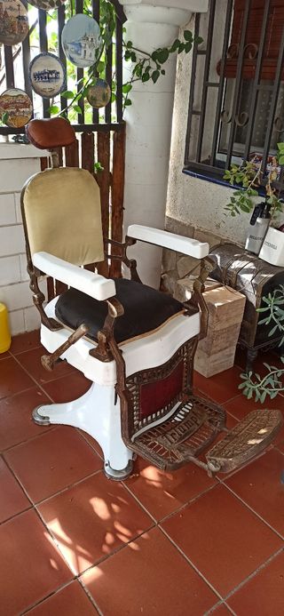 Pieza de colección. Silla reclinable de barbero o peluquería antigua. Para restaurar. Está reparada mecánicamente y en muy buenas condiciones, conserva alguna tela original. Sin holguras y con freno efectivo. No se hace envío y se encuentra en Piera. Sillón vintage barbería. Precio negociable