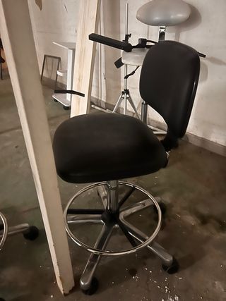 Incluye: • 3 taburetes giratorios blancos (uso estético, funcionales, tapicería con desgaste). • 2 sillas altas negras con respaldo y aro reposapiés, cómodas y en buen estado. 💡 Perfecto para empezar o ampliar negocio sin gastar mucho. 📍 Entrega en mano. 💶 Precio del lote: 100 € (negociable).