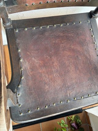 Silla antigua forrada en piel, en perfectas condiciones, muy antigua y valorada