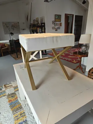 Banqueta dormitorio piel y metal dorado