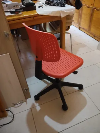 Silla giratoria de Ikea, diseñada para niños. Su asiento y respaldo son de plástico perforado para mayor comodidad. - Altura ajustable. - Base con ruedas para fácil movilidad. Precio algo negociable