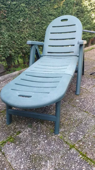 Tumbona de jardín ideal para exteriores. Su diseño permite ajustar el respaldo para mayor comodidad. - Material resistente y duradero. - Fácil de limpiar. - Apariencia moderna y funcional. -Con poco uso, prácticamente nueva.