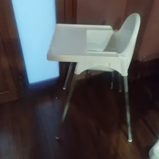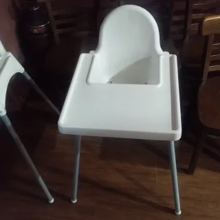 Silla alta para comer, ideal para bebés y niños pequeños. Su diseño es práctico y seguro. - Estructura de metal y plástico. - Bandeja de comida. - Patas plateadas. Dos sillas pir15 euros cada una