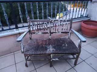 Se vende conjunto de sillas de estilo alfonsino de finales del siglo XIX/principios del siglo XX. Encontradas en casas señoriales de epoca. Estan en buena condición, aparte de una que necesita una mano de barniz o restaurar por alguien que sepa Estructura de madera maciza. Asiento y respaldo de rattan tejido. Detalles ornamentales tallados.