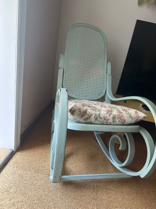 Preciosa silla mecedora con un diseño clásico y encantador. Añade un toque de estilo a cualquier rincón. -Asiento nuevo y reforzado. - Estructura de madera. - Respaldo de rattan.