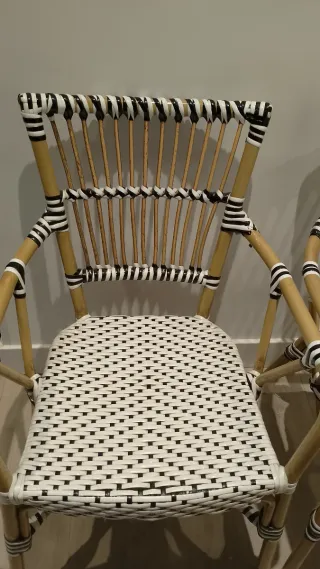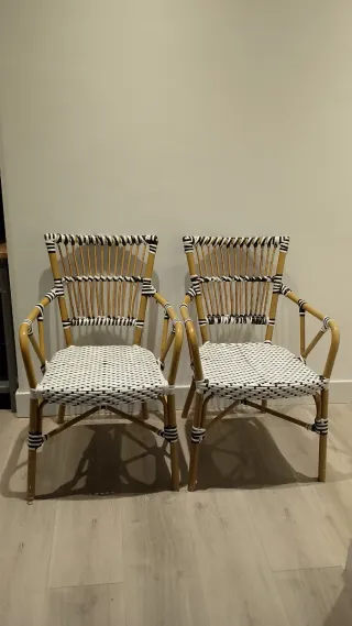 Conjunto de dos sillas de comedor o sala de estar. Cada pieza Nueva cuesta 319€ Vendo las 2 por 220€ - Estructura de madera. - Revestimiento de Rattan tejido. - Diseño alto y elegante.