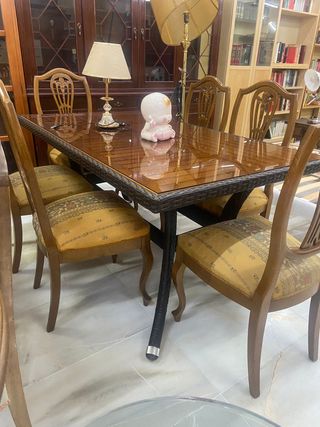 Se venden 6 sillas con un diseño elegante y clásico. (5€ por silla, total 30€, si se está interesado también se puede vender la mesa) - Estructura principal de madera. - Asiento y respaldo con detalles en rattan.