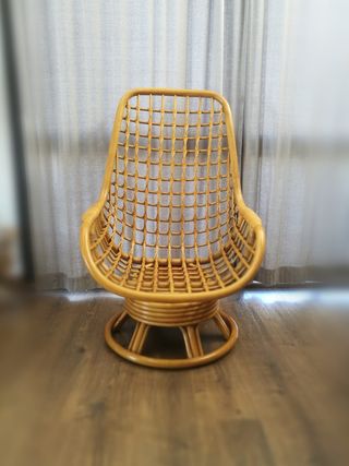 Sillon giratorio de bambu, años 70. Medidas 110x73x70cm RETRO MID CENTURY SPACE AGE MODERN RATAN RATTAN MIMBRE DISEÑO NORDICO SPACE AGE HUEVO LOUNGE CHAIR SILLA TULIP OVO FRITZ HANSEN OVO EGG CHAIR JOE COLOMBO EERO SAARINEN AARNIO BALL GLOBE WOMB