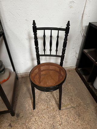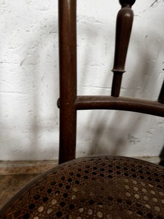 4 sillas para restaurar. Tratadas para la carcoma, aunque yo las volveria a tratar. 25 cada una precio definitivo Conjunto de cuatro sillas con un diseño clásico y elegante. Perfectas para darle un toque especial a tu comedor o salón. - Estructura de madera robusta. - Respaldo con detalle de ratán. - Asiento tapizado en terciopelo.